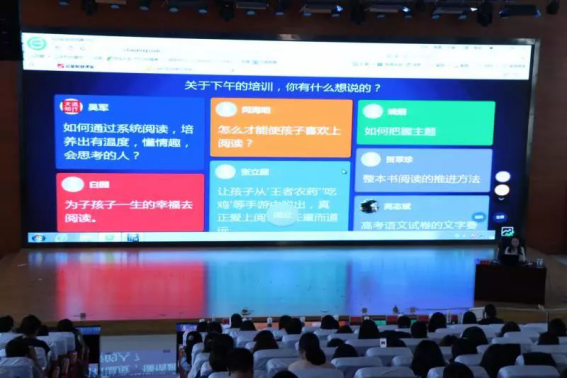 在现场颁奖活动与学生展示的《三字经》节目后,由出席本次活动的领导共同上台拉开了以“书芳昭华 阅己达人”为主题的第五届师生共读活动的帷幕。接下来由成都市草堂小学的高级教师梁庆蓉、鄂尔多斯市康巴什区第一中学的优秀教师李佳佳、全国名优小学校整书课程课例化项目负责人、新阅读研究所研究员谢建萍为全市作了以《从群书阅读到群阅读》《常态阅读分享》《整书阅读课程的实施与问题研究》等为主题的讲座培训。