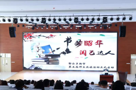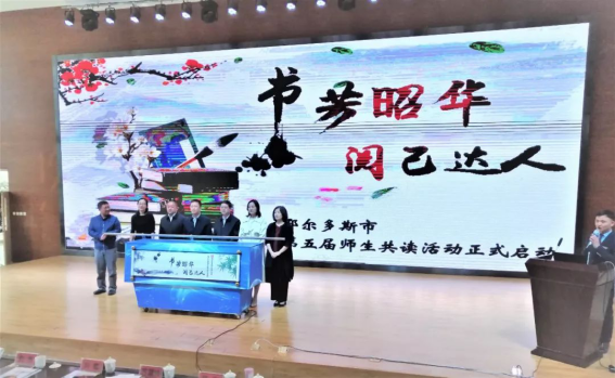 为更好地营造“书香鄂尔多斯”浓厚氛围,切实提高广大师生读书兴趣, 在4月23日世界读书日到来之际,市教体局在康巴什区第一小学东校区举办了全市智慧阅读培训暨第五届师生共读活动启动仪式。市委宣传部副部长杨雨龙,团市委副书记白杰,市教体局副局长郑军,市精神文明创建指导中心主任刘佳等出席活动,市教体局有关科室、直属单位负责人,各旗区教体局分管副局长、电教站(中心)负责人,全市语文教研员、各中小学教学分管副校长、语文教师在现场或通过视频会议参与了活动。