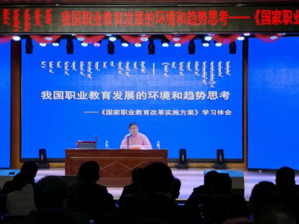 启动仪式上,乌审旗人民政府副旗长巴音其木格致欢迎词,市教体局副局长朝戈讲话并宣布职教活动周正式启动。活动特邀原教育部职业教育与成人教育司教产合作处、高职发展处处长,现国家开放大学副校长林宇作“我国职业教育发展的环境和趋势思考——《国家职业教育改革实施方案》学习体会”专题讲座,介绍了我国职业教育发展的现状和背景,分享了“职教20条”的学习体会,并以高职为例分析了职业教育发展的趋势,提出了下一步发展思路。全体与会人员还观摩了乌审旗职业中学师生技能展演,在乌审旗青少年生命安全体验中心参与体验。