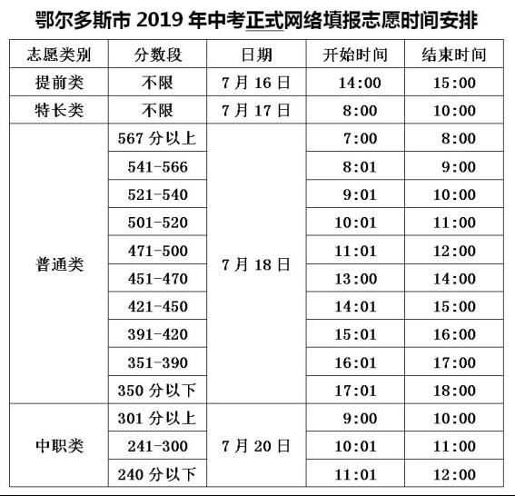 鄂尔多斯市2019年中考正式网络填报志愿时间安排