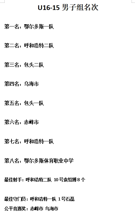 男子组共有18支球队参赛。我市代表队顽强拼搏,越战越勇,决赛中以4:2战胜呼和浩特市代表队,夺得冠军。代表我市体育职业中学出战的男队也取得第八名的成绩。