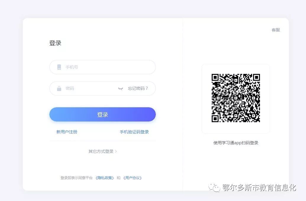 输入手机号、密码进行登录,或者利用手机上的学习通APP扫描二维码登录。