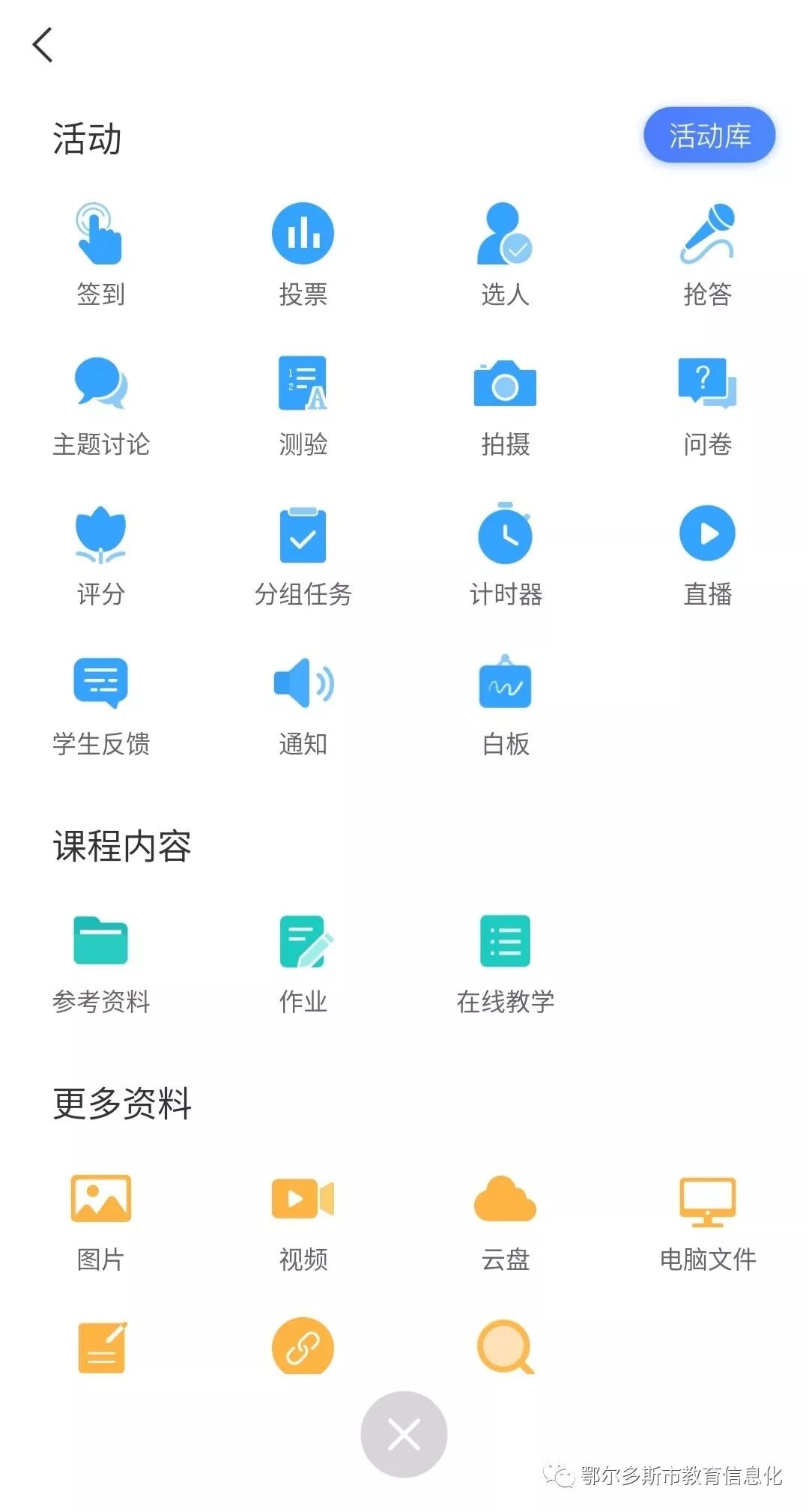 在活动库中选择相应的教学活动,这里选择“直播”。