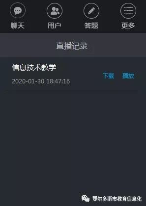点击结束直播,选择“结束(允许回看)”,学生在直播结束后也可以回看直播过程。