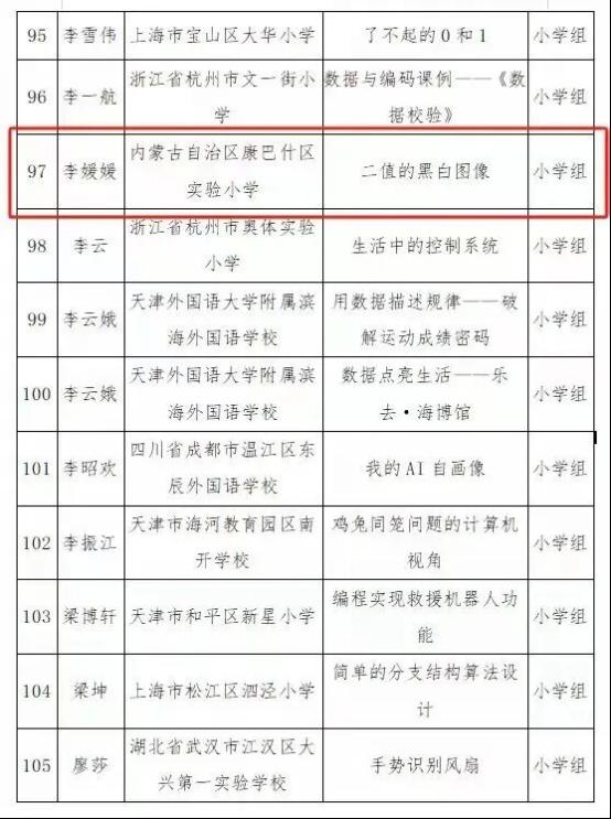 近日,活动结果名单公布,在此次案例征集活动中,我区信息科技教师凭借扎实的专业素养与创新的教学实践,交出了亮眼答卷:实验小学李媛媛老师的课例《二值的黑白图像》、第三中学王永军老师的项目式学习课程案例《触摸紫禁之巅 故宫研学之旅——我的网络生活》,经过专家对提交课件的意识形态、主题贴切性和格式内容的严格审查,成功入围拟收录名单,将收录至中国教育学会中小学信息技术教育专业委员会智慧教师专业发展平台和中国教育学会官网会员专区。