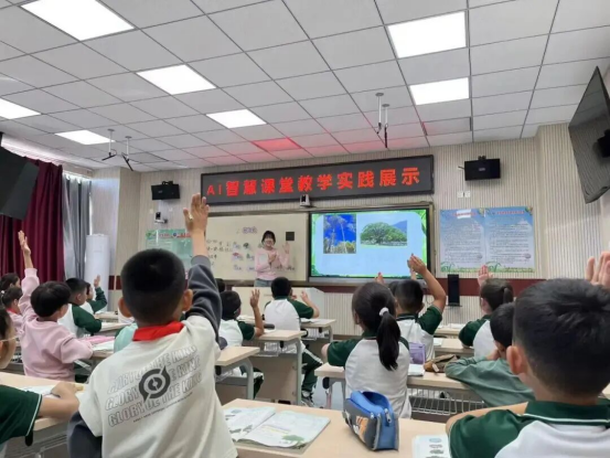 语文课堂以AI生成的自然场景探索视频导入,激发了学生学习兴趣,教学环节中借AI生成树木高清图呈现特点,解决学生实物观察难题,用AI标注拼音、拆分汉字结构,助力了学生纠音识字,一节精彩纷呈的课堂展现AI赋能教育的作用。