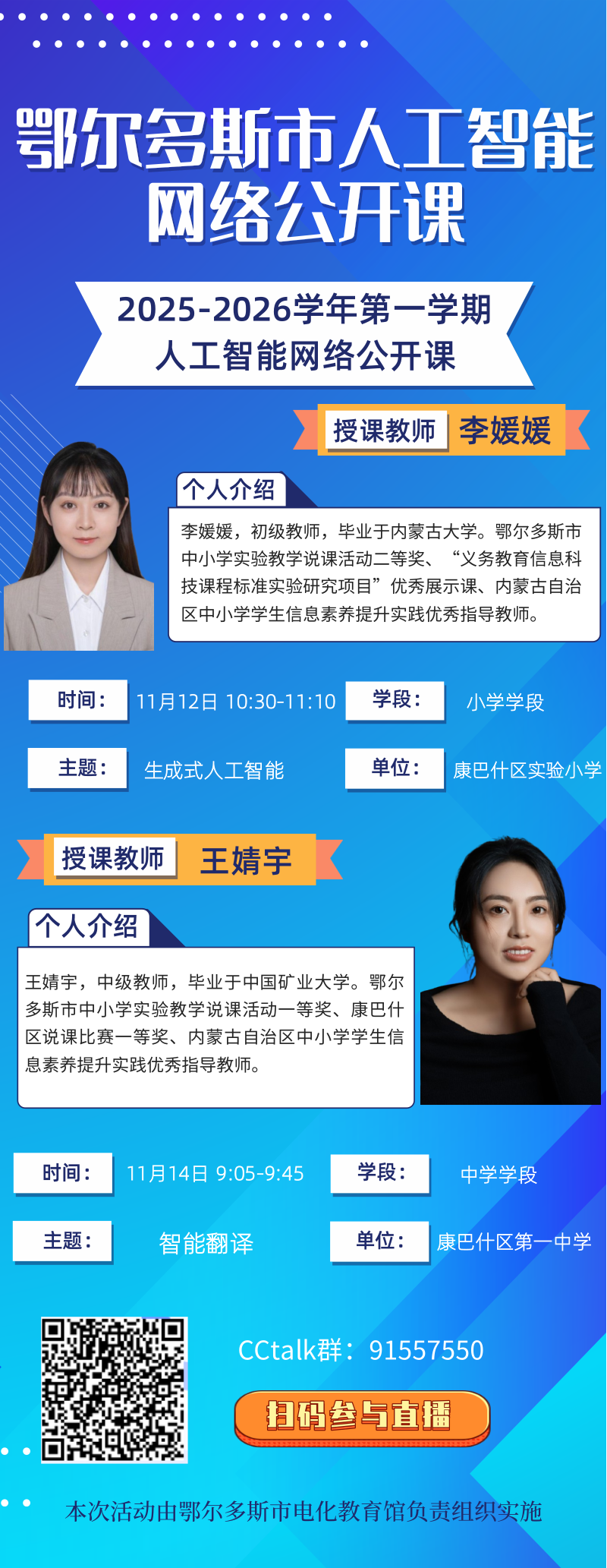 鄂尔多斯市第七场人工智能教学应用案例网络宣讲活动预告