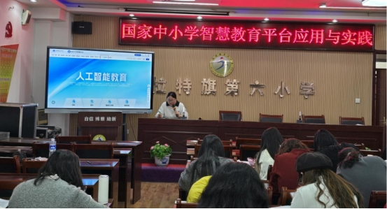 为深入推进教育数字化转型,推动人工智能与教育教学深度融合,切实提升教师数字化教学应用能力,近日,达拉特旗第六小学组织全体教师开展国家中小学智慧教育平台人工智能教育板块专题培训。本次培训由杜新跃老师主讲,培训内容紧扣平台实操应用,系统讲解人工智能教育板块核心功能,助力教师熟练运用智能工具优化教学流程,让智慧教育真正落地课堂。