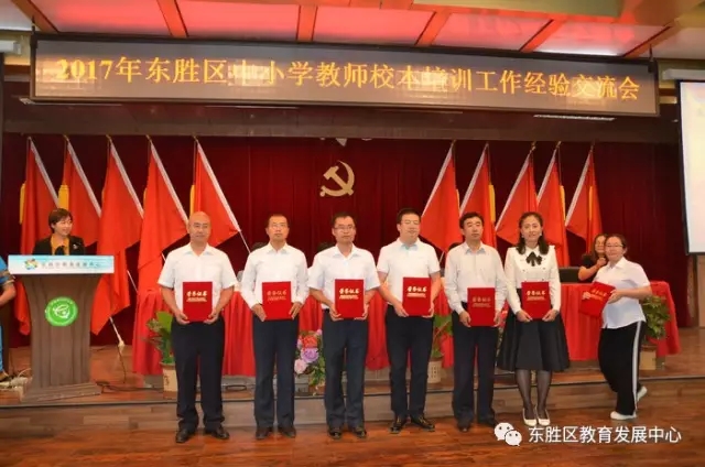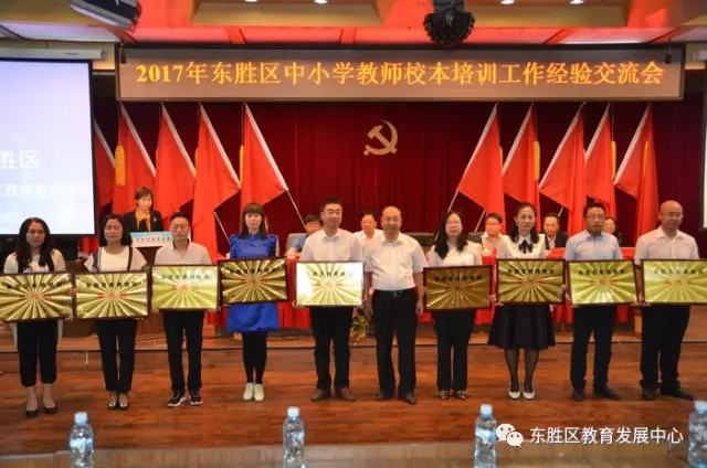 会上,与会领导为东胜区教师校本培训工作典型经验与成果案例获奖单位及个人颁奖,宣布东胜区东联现代中学等10所中小学校成为教师培训基地校并授牌。