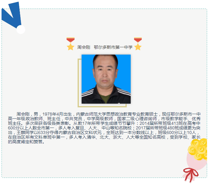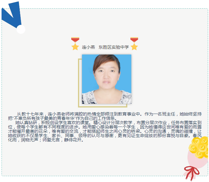 静能春风化雨,润物无声;动能点石成金,琢璞成器。班主任,没有级别的主任,却担当着最大的人生责任。校园里,总能见到你们步履匆匆的身影;教室内,总能听到你们谆谆善诱的话语。可敬可赞,教学之路上挥洒着你们的青春和才华;亦师亦友,育人之途中流淌着你们的辛勤和奉献。