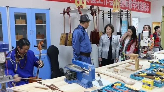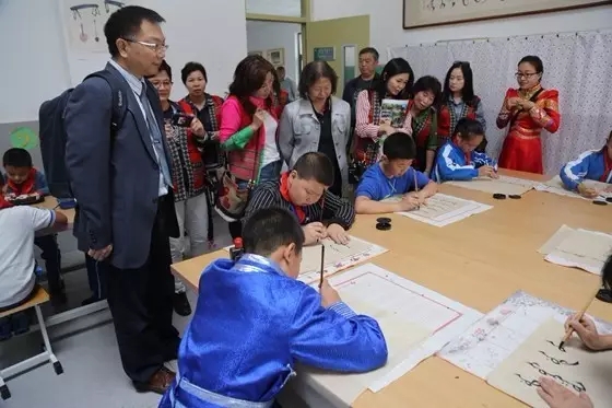考察团一行参观了两校的民俗馆、学生宿舍、图书馆、科技活动室、艺术教室、餐厅、室内体育馆、学生教室等校舍场馆,并与校长和教师进行深入细致的交流。在考察两校民族传统文化艺术教育时,参访团一行聆听了学生合唱团的合唱表演与马头琴教师的马头琴独奏,对蒙古族曼妙悠扬的传统文化艺术赞赏有加。