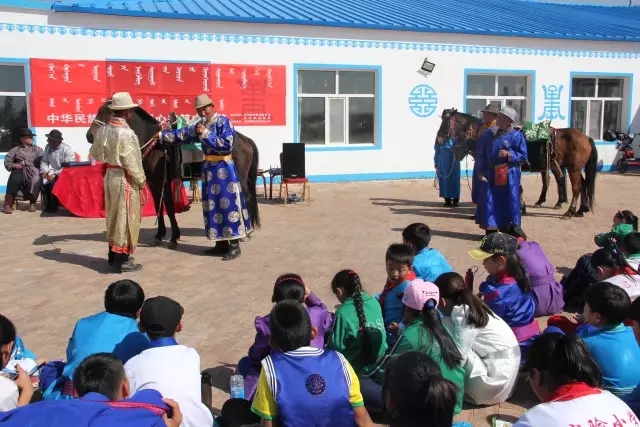 40多分钟后,徒步队伍到达了目的地“德都蒙古农家园”。来自蒙汉学校的126名学生分为10个小组,开展了唱歌、跳舞、丢手绢、老鹰捉小鸡等有趣的互动游戏活动。活动中,蒙古小朋友给汉族小伙伴们教授了一些简单常用的蒙古语。互动活动结束后,师生们听取了杭锦旗马业协会组织开展的马文化讲座。