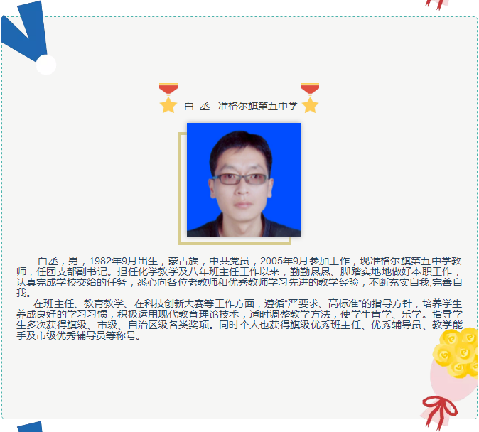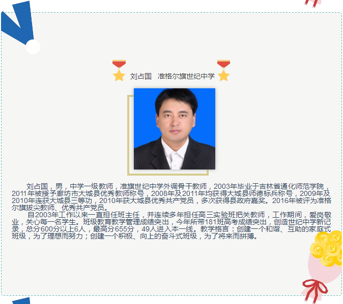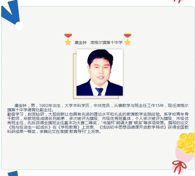 静能春风化雨,润物无声;动能点石成金,琢璞成器。班主任,没有级别的主任,却担当着最大的人生责任。校园里,总能见到你们步履匆匆的身影;教室内,总能听到你们谆谆善诱的话语。可敬可赞,教学之路上挥洒着你们的青春和才华;亦师亦友,育人之途中流淌着你们的辛勤和奉献。