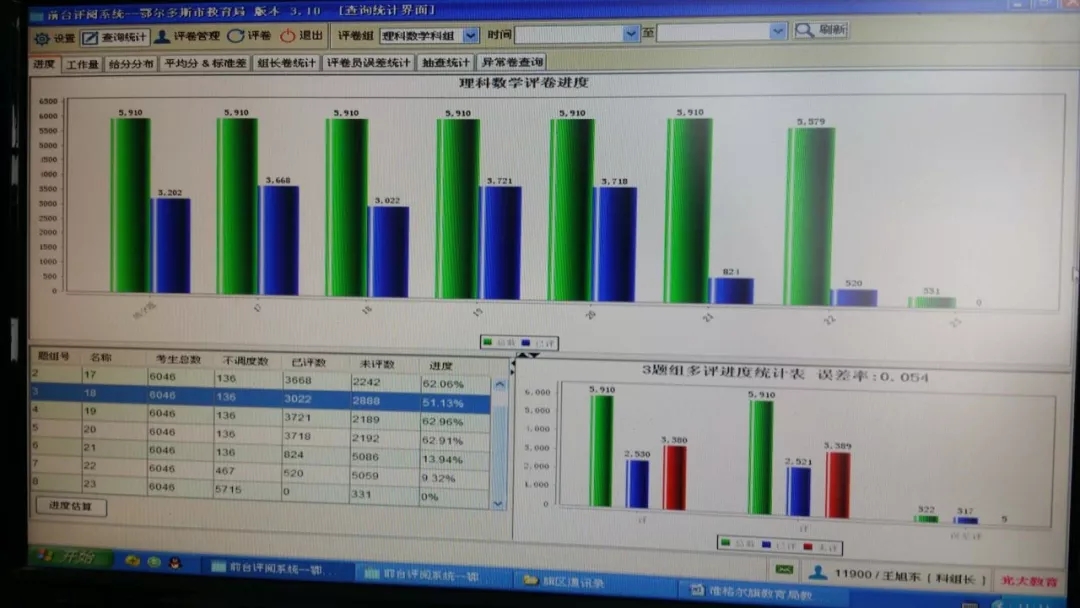 为确保本次阅卷工作高标准、无疏漏,市教研室进一步规范了操作流程:将全市9个旗区20个考点的纸质版试卷集中于指定地点,扫描为电子版;通过专用软件将电子试题重新排列组合再分发到各阅卷点;由阅卷点负责人组织教师集中评阅并提交到服务器,专业技术人员对考试成绩进行统计分析。