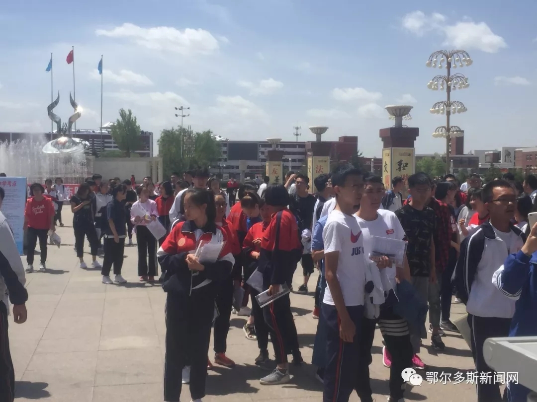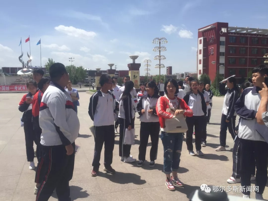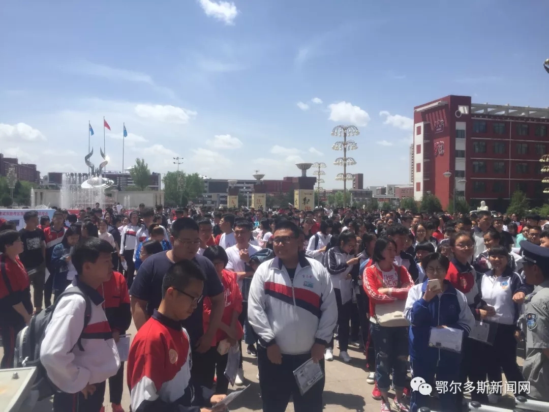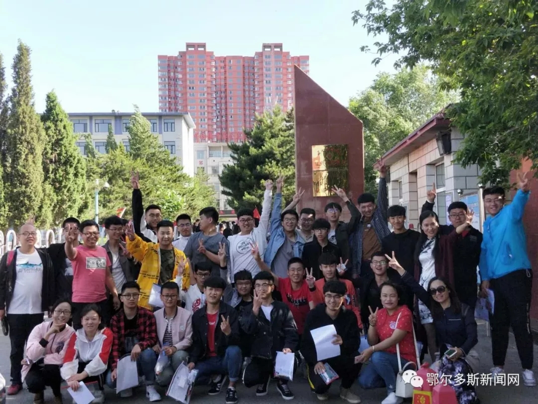 ▼鄂尔多斯市三中门口的考生们考前一起合影。