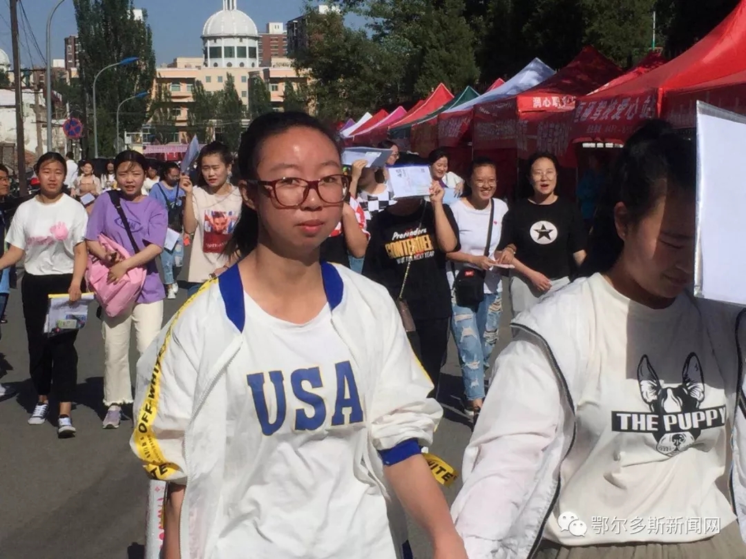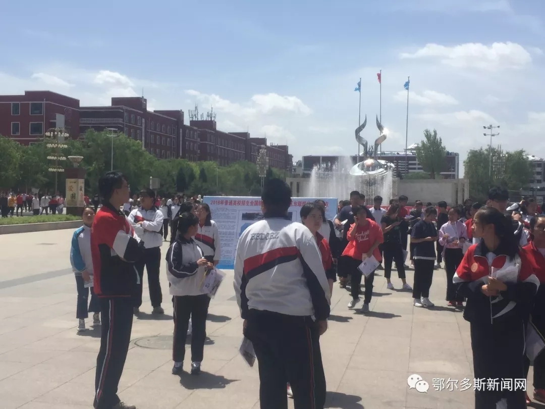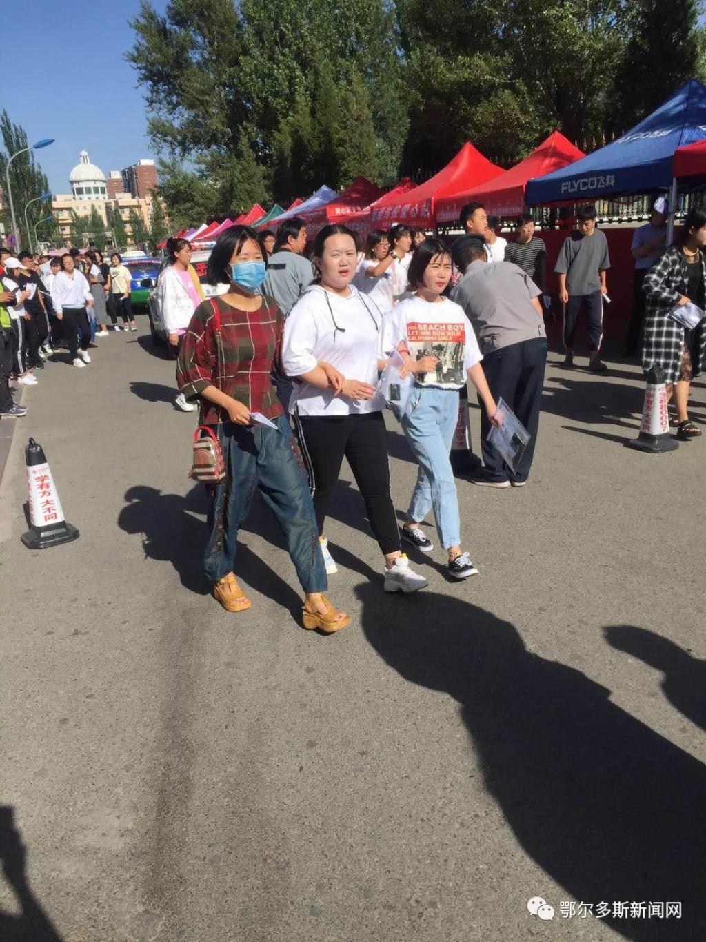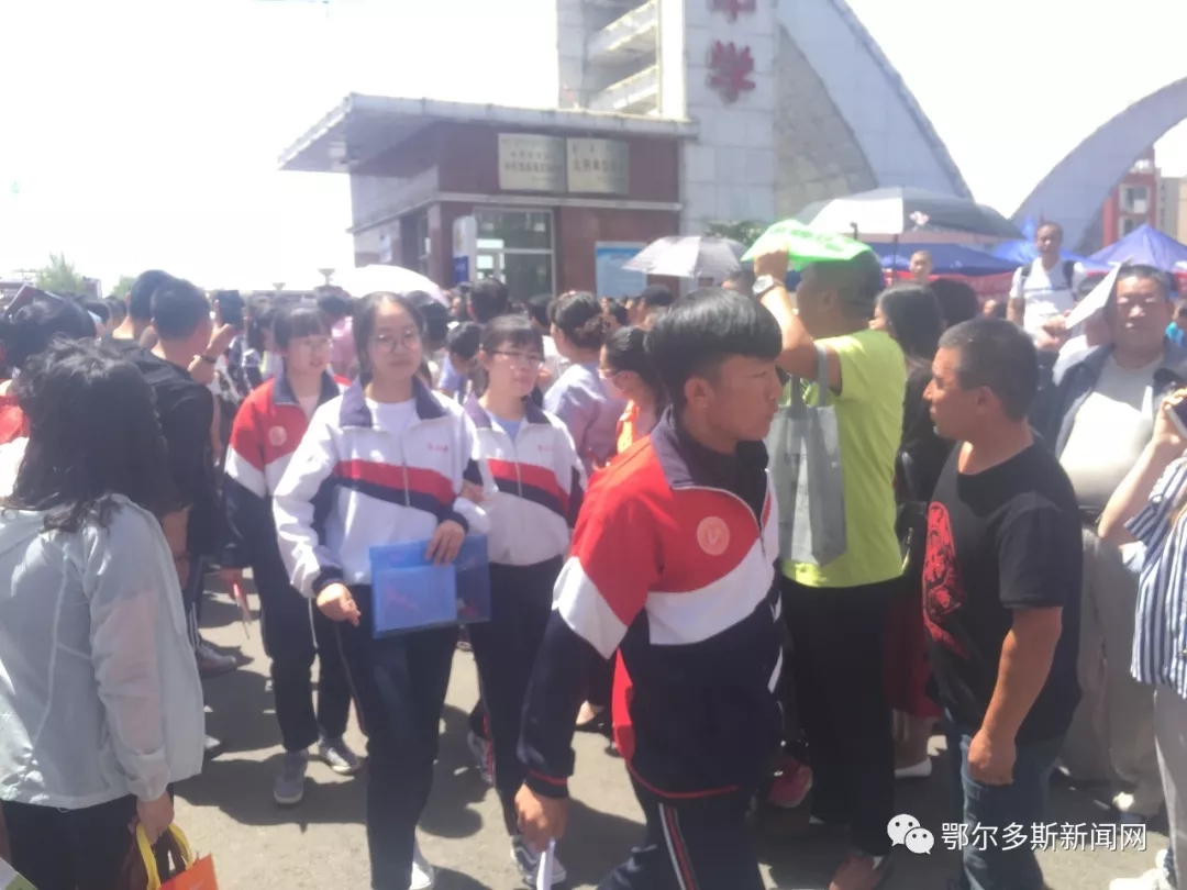 ▼鄂尔多斯市三中门口的考生们考前一起合影。