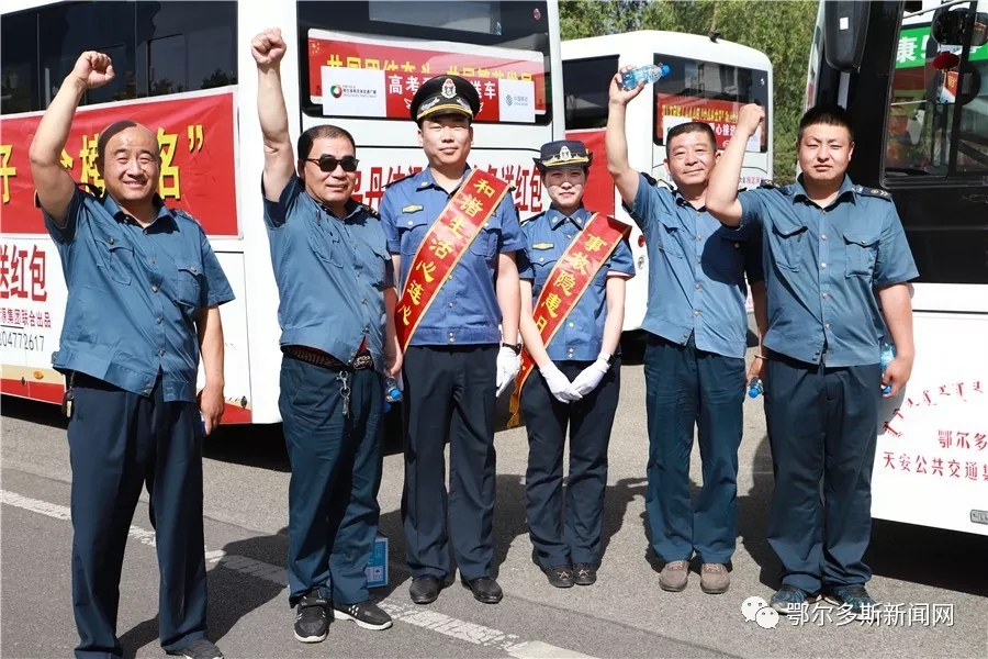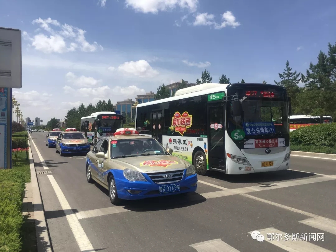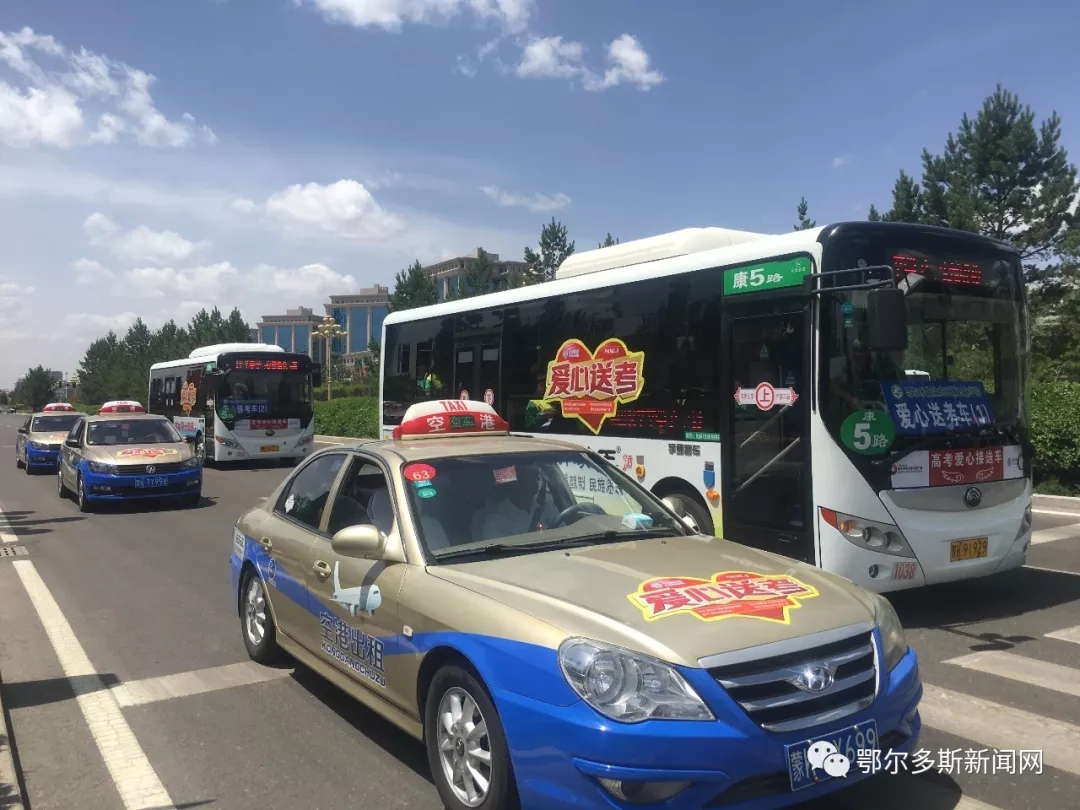 ▼考场外,爱心送考车整齐的排列着,只为第一时间为高考的孩子们提供方便,司机师傅也在为考生们加油。
