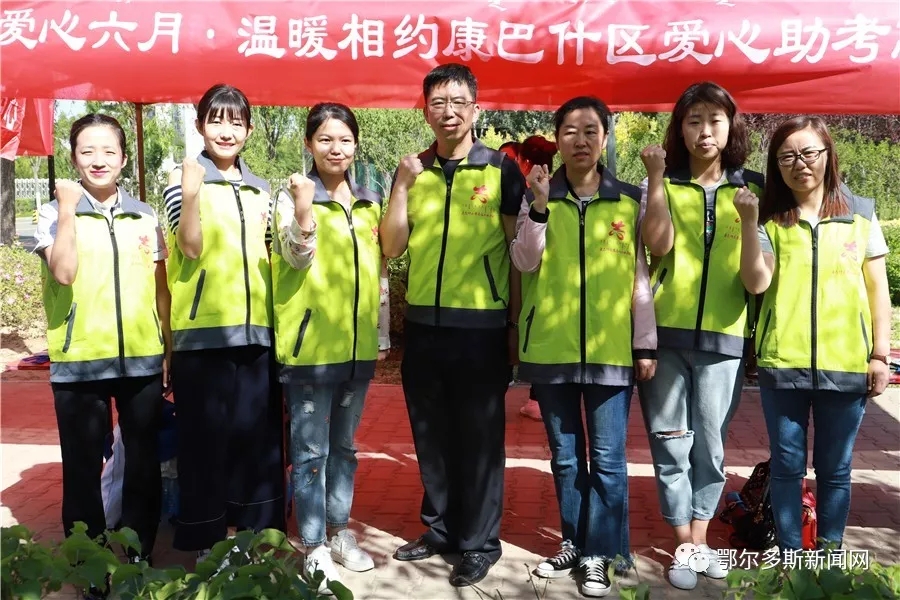 ▼爱心助考站的工作人员为考生加油!