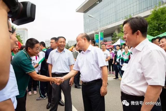 6月25日,全国88所知名高校、150余名招生人员汇聚鄂尔多斯市第一中学,积极参与市一中举办的“高校招生咨询会”。上午,鄂尔多斯市委副书记、市人民政府代市长斯琴毕力格、副市长刘建勋在市教育局党组书记、局长高怀京、市人民政府办公厅副主任陈喜荣、市第一中学校长白玉亮的陪同下亲临现场观摩本次咨询会,与高校招生工作人员、考生、家长、教师进行深入交流。咨询现场人潮涌动,各高校招生工作人员与考生、家长热烈互动,详细地介绍招生政策、院校情况、就业前景等有关情况,耐心地回答提问,热情欢迎我市优秀毕业积极投报。