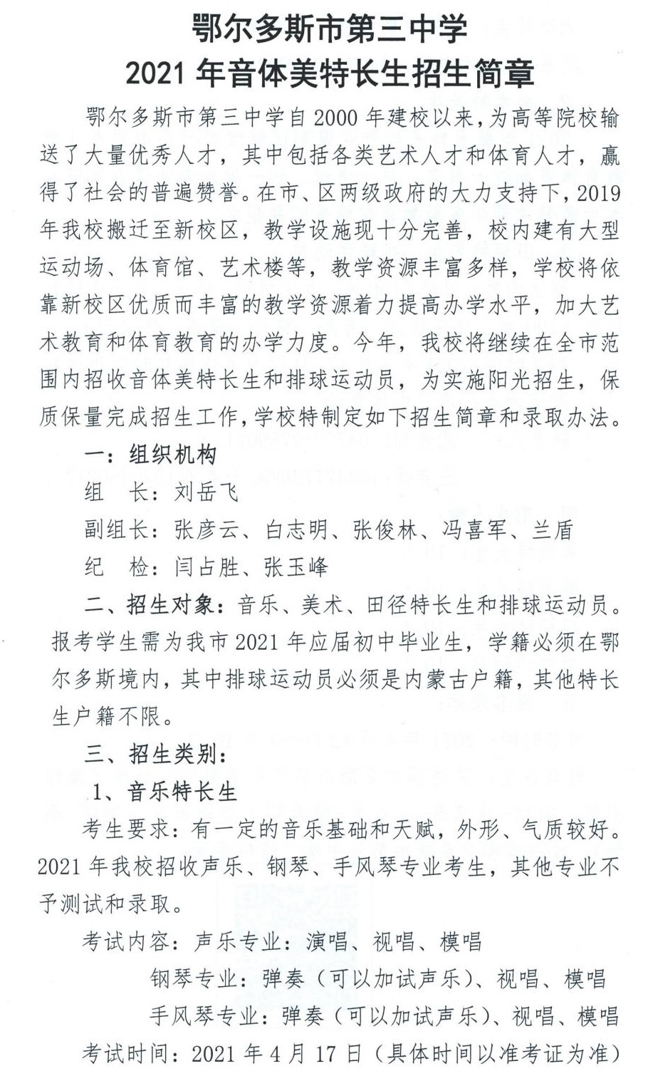 上一条:鄂尔多斯市蒙古族第二中学2021年特长生招生简章 下一条:鄂尔多斯市2021年中考加分审核表(下载)